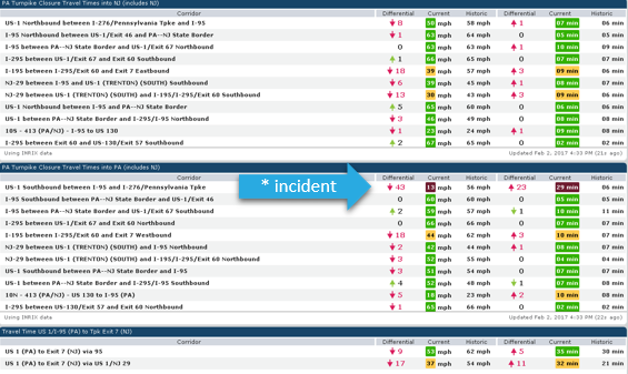 PennDOT rerouted local traffic, aiming to minimize disruption to local traffic. During this period, local roads and three other bridges were burdened with larger-than-normal traffic levels, making it critical to monitor travel times, identify congestion increases and quickly identify when an incident occurs to ensure minimal traffic impact.