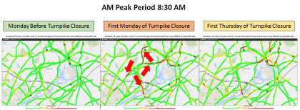 PennDOT also used Trend Map to understand regional impact of peak period traffic to adjust their Regional Traffic Management Plan.