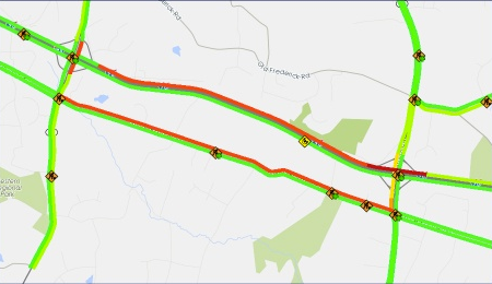 Trend Map visualizes the impact of the storm to the NCR roadways compared to normal traffic conditions, using animated performance mapping. This helps highlight areas of severe congestion and delay spatially and temporally, to help develop better procedures and mitigation strategies for future events.
