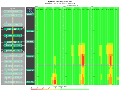 Congestion Scan to evaluate the impact of construction early on (late 2012) vs 2013 and 2014, when multiple sections were underway.